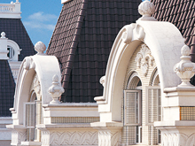 引進(jìn)外部智力,招賢納才,高薪聘請國內(nèi)資深歐 式建筑設(shè)計專家擔(dān)任企業(yè)技術(shù)顧問,并聘用國內(nèi) 優(yōu)秀設(shè)計師組建設(shè)計團(tuán)體。在建筑設(shè)計中,設(shè)計 師把握仿真石能任意造型的特點,將建筑的功能 化、藝術(shù)化、人格化和個性化得以充分展現(xiàn),體 現(xiàn)了現(xiàn)代建筑高貴、典雅的風(fēng)格,讓觀者領(lǐng)略了 不同凡響的品味和悠遠(yuǎn)的歐洲文化。